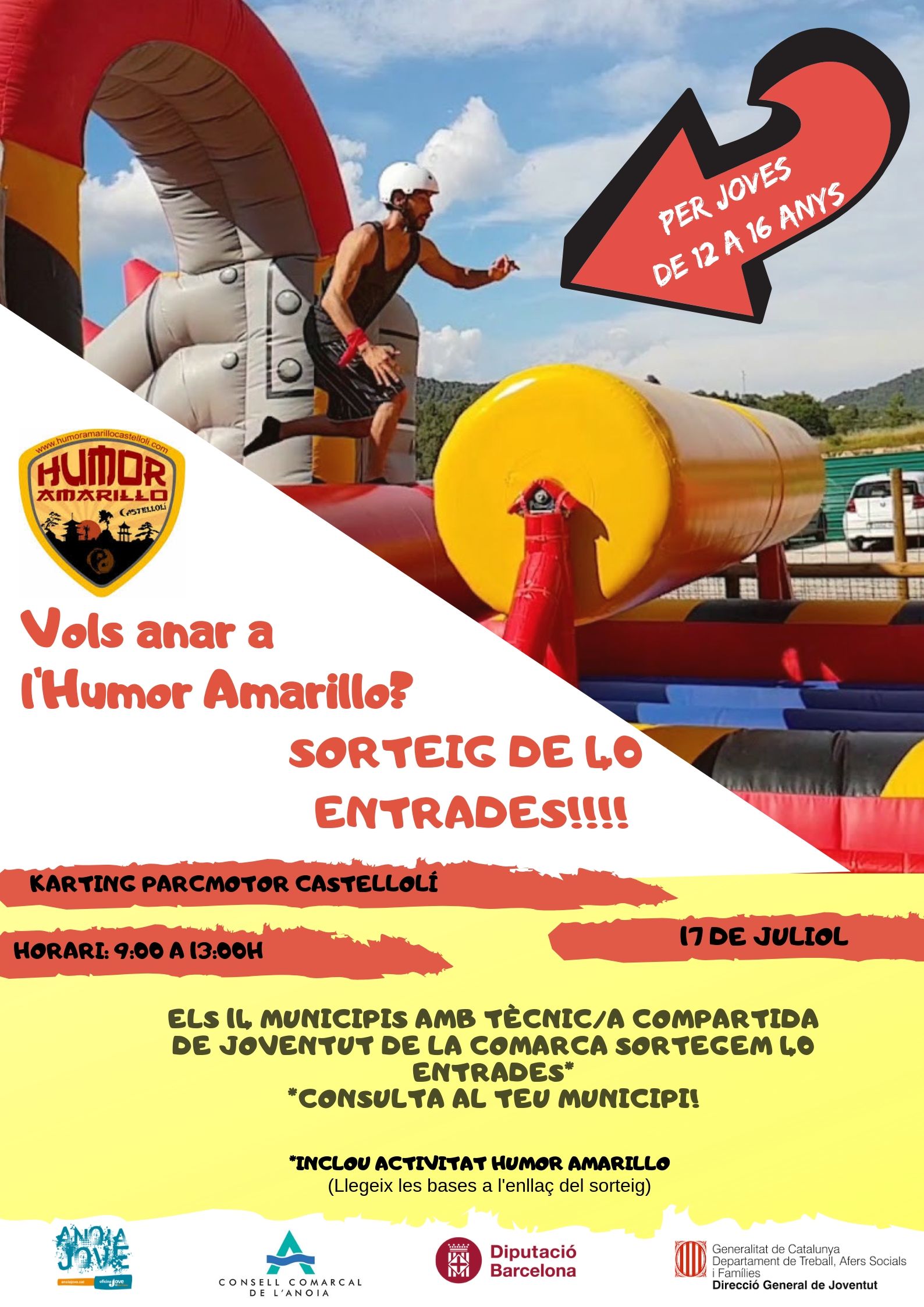 – L’entrada del sorteig inclou: Entrada per realitzar l’activitat d’Humor Amarillo al Karting Parc Motor de Castellolí