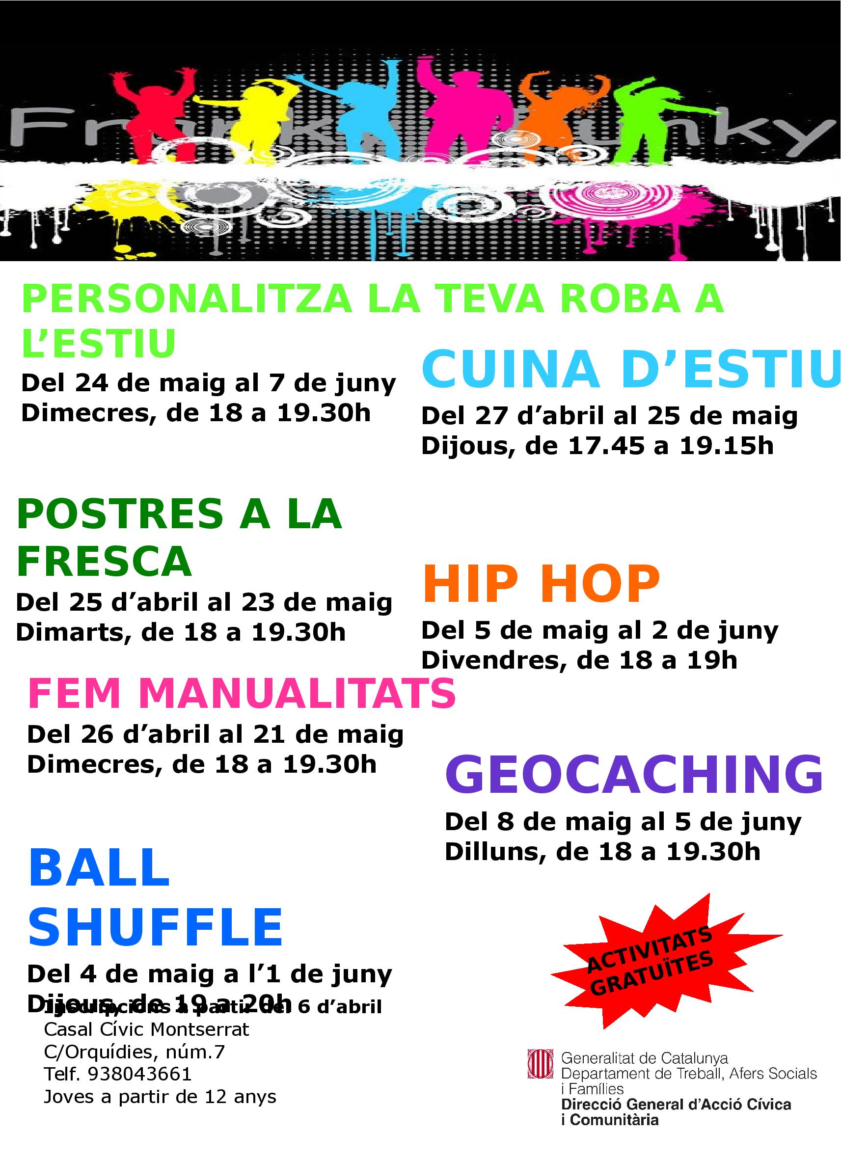 Per més informació i inscripcions podeu trucar al Centre Cívic Montserrat 93.804.36.61 o enviar un correu electrònic a cc.montserrat@gencat.cat preguntant per la Natàlia.