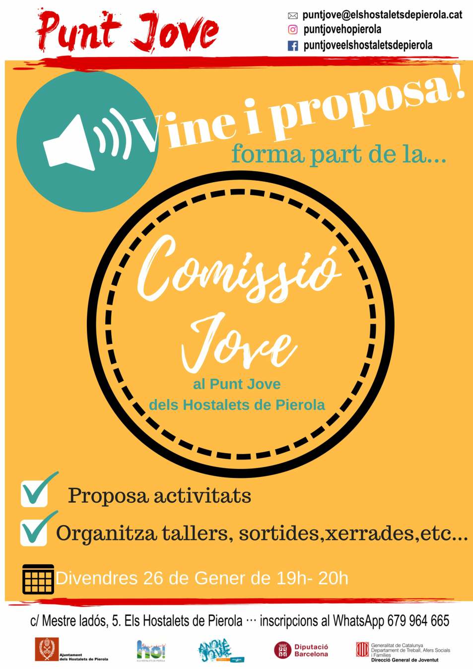 - Divendres 26: Vine i proposa! Forma part de la comissió Jove! 19h – 20h.