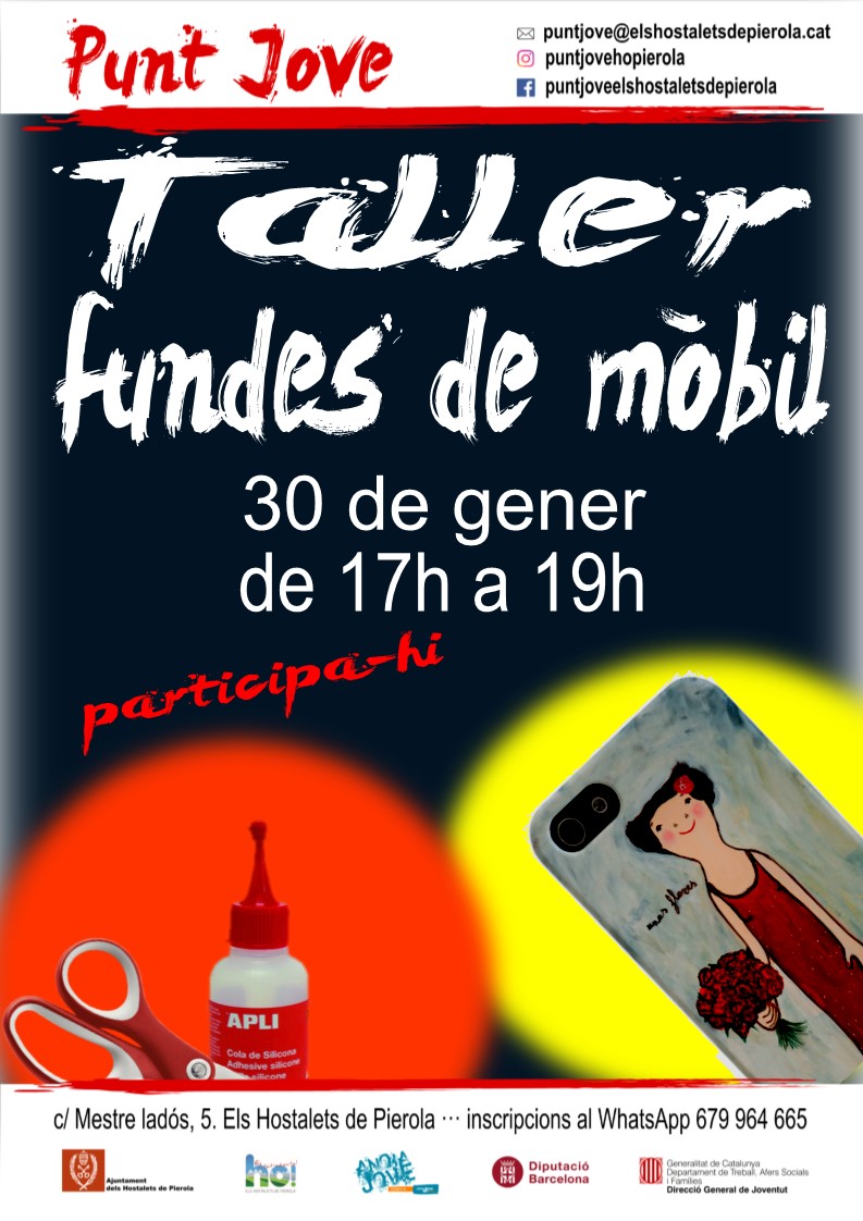 - Dimarts 30: Taller fundes de mòbil. 17h – 19h.