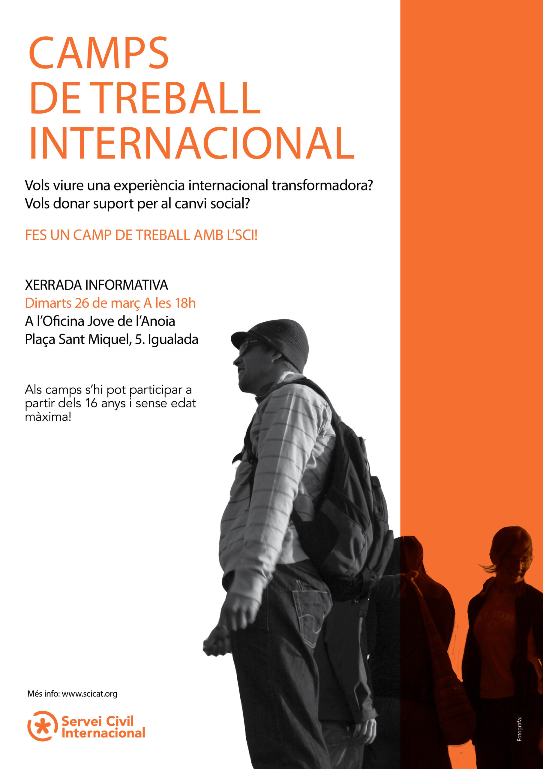El dimarts 26 de març a les 18h tindrà lloc una xerrada sobre els camps de voluntaritat (camps de treball) de l’SCI. En aquesta xerrada ens informaran de les opcions, dels procediments i del seu funcionament. A més, participaran voluntaris d’altres anys que ens explicaran la seva experiència i consells pràctics.
