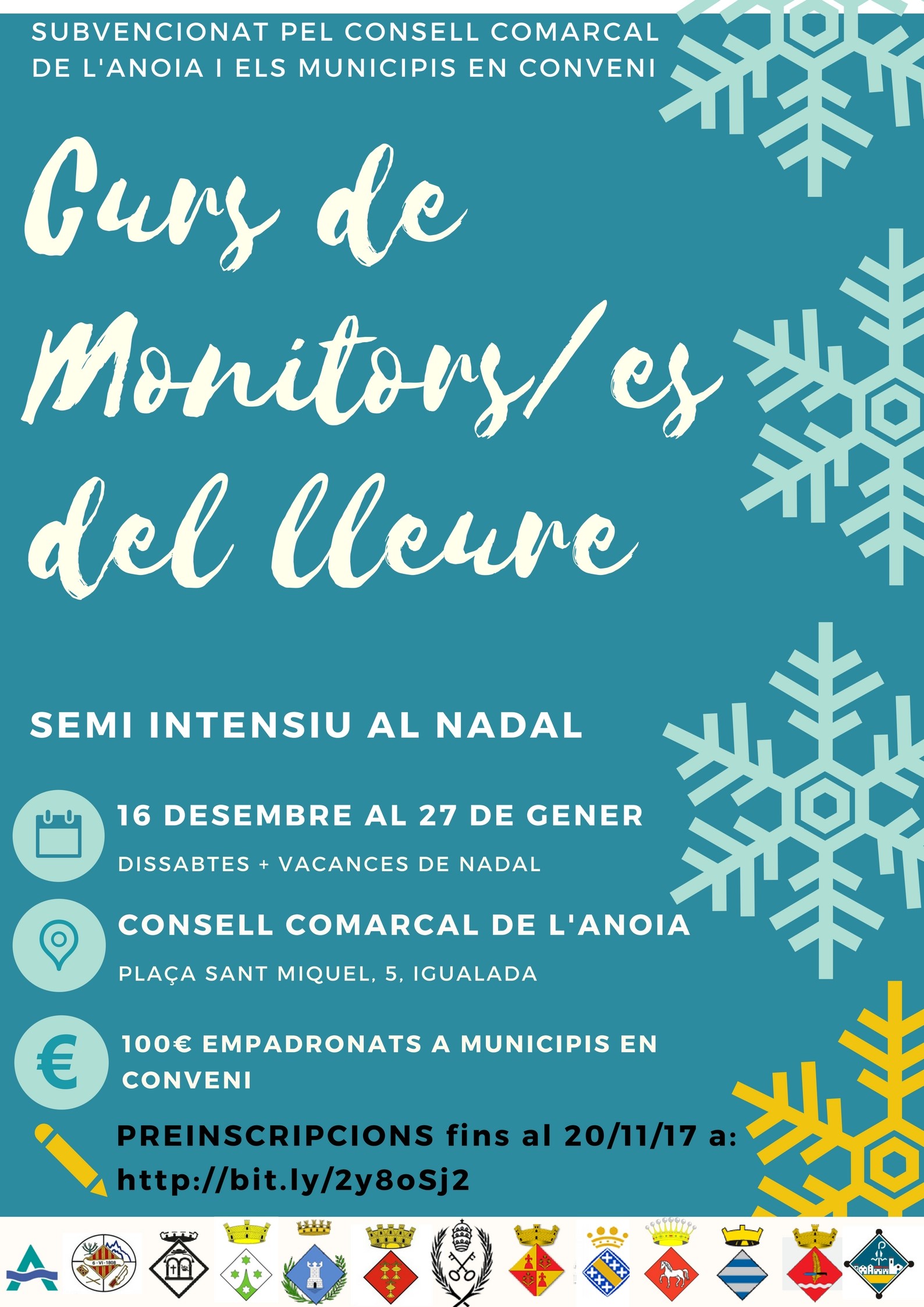 El Consell Comarcal de l’Anoia i els municipis del Bruc, Capellades, Carme, Castellolí, Copons, Els Hostalets de Pierola, Òdena, La Pobla de Claramunt, Sant Martí Sesgueioles, Sant Martí de Tous, Vallbona d’Anoia i Vilanova del Camí organitzen de forma mancomunada una edició semiintensiva del curs de Monitors/es del Lleure.