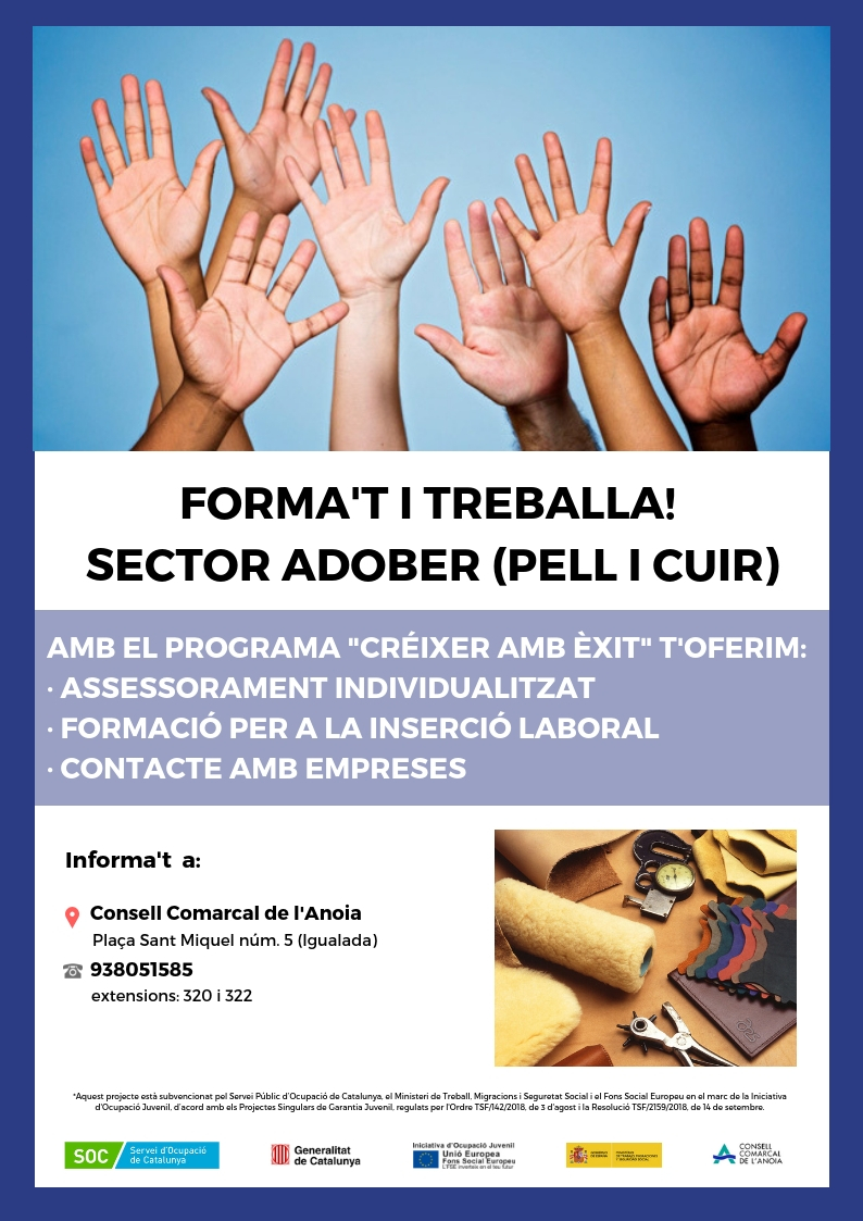 Es tracta d’un programa dirigit a joves d’entre 18 i 25 anys, beneficiaris de la Garantia Juvenil, que vulguin formar-se en el camp de l’adoberia (pell i cuir) per trobar feina en aquest sector.