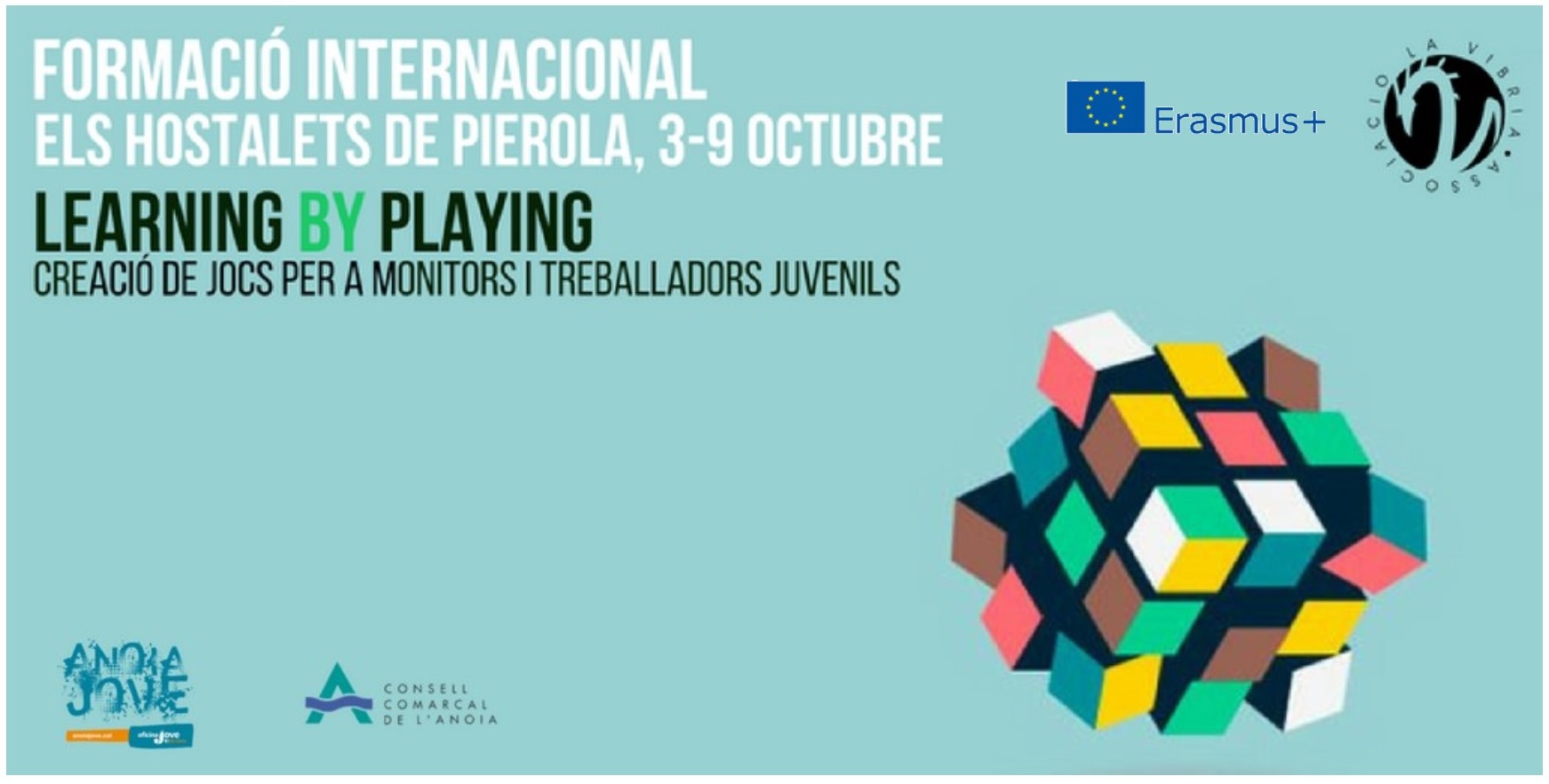 L’Oficina Jove de l’Anoia i La Víbria Intercultural us convidem a participar de la formació internacional Learning by Playing que es durà a terme a l’alberg de Can Roviralta dels Hostalets de Pierola del 3 al 9 d’octubre i està dirigida a monitors/es del lleure, directors/es del lleure, treballadors/es juvenils i, en general, qualsevol professional en l’àmbit de l’educació no formal.
