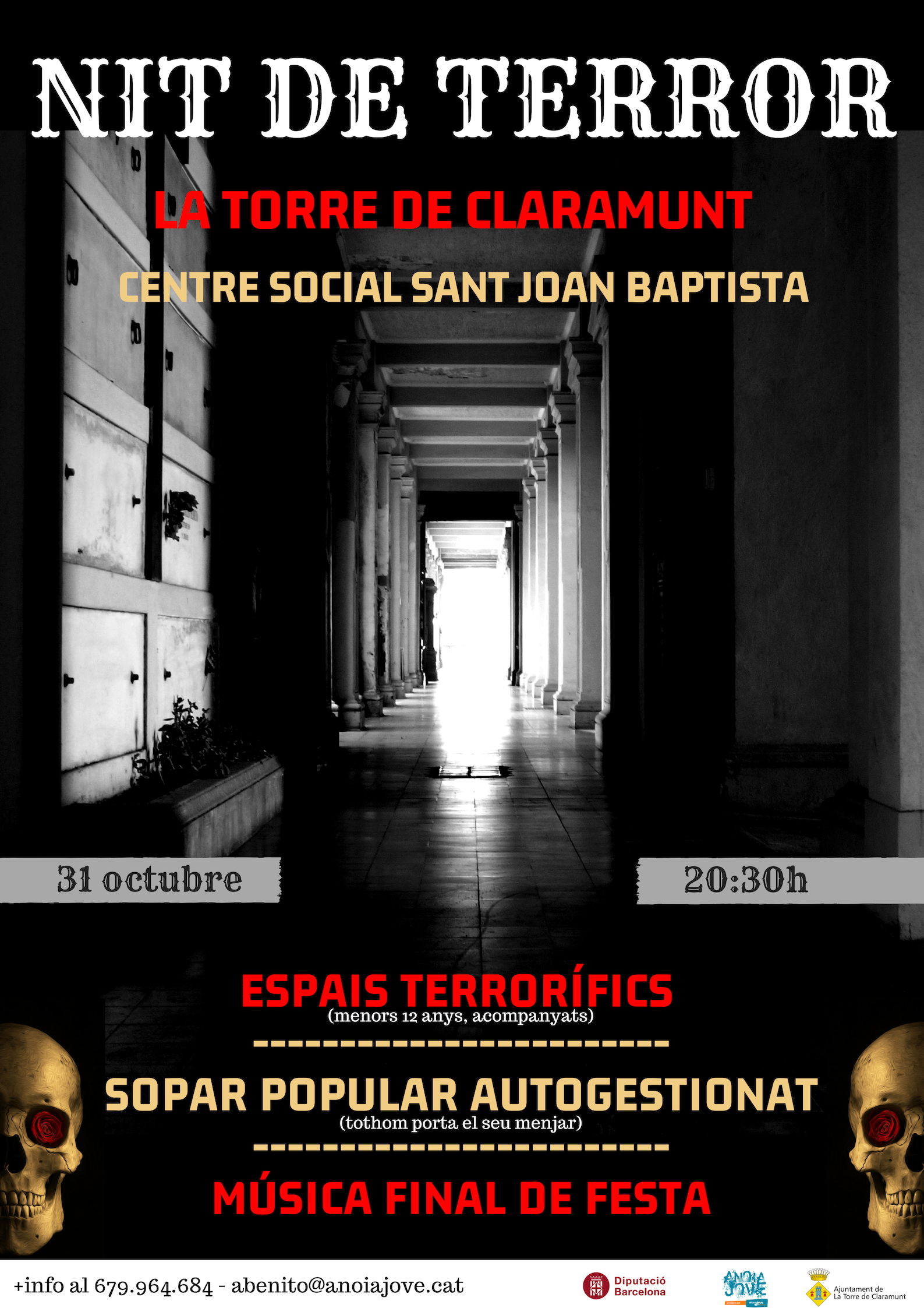 A la nit del terror s’hi podran trobar espais terrorífics (els menors de 12 anys hauran d’anar acompanyats), un sopar popular autogestionat (tothom porta el seu menjar) i música final de festa. Totes les activitats es realitzaran al Centre Social Sant Joan Baptista.