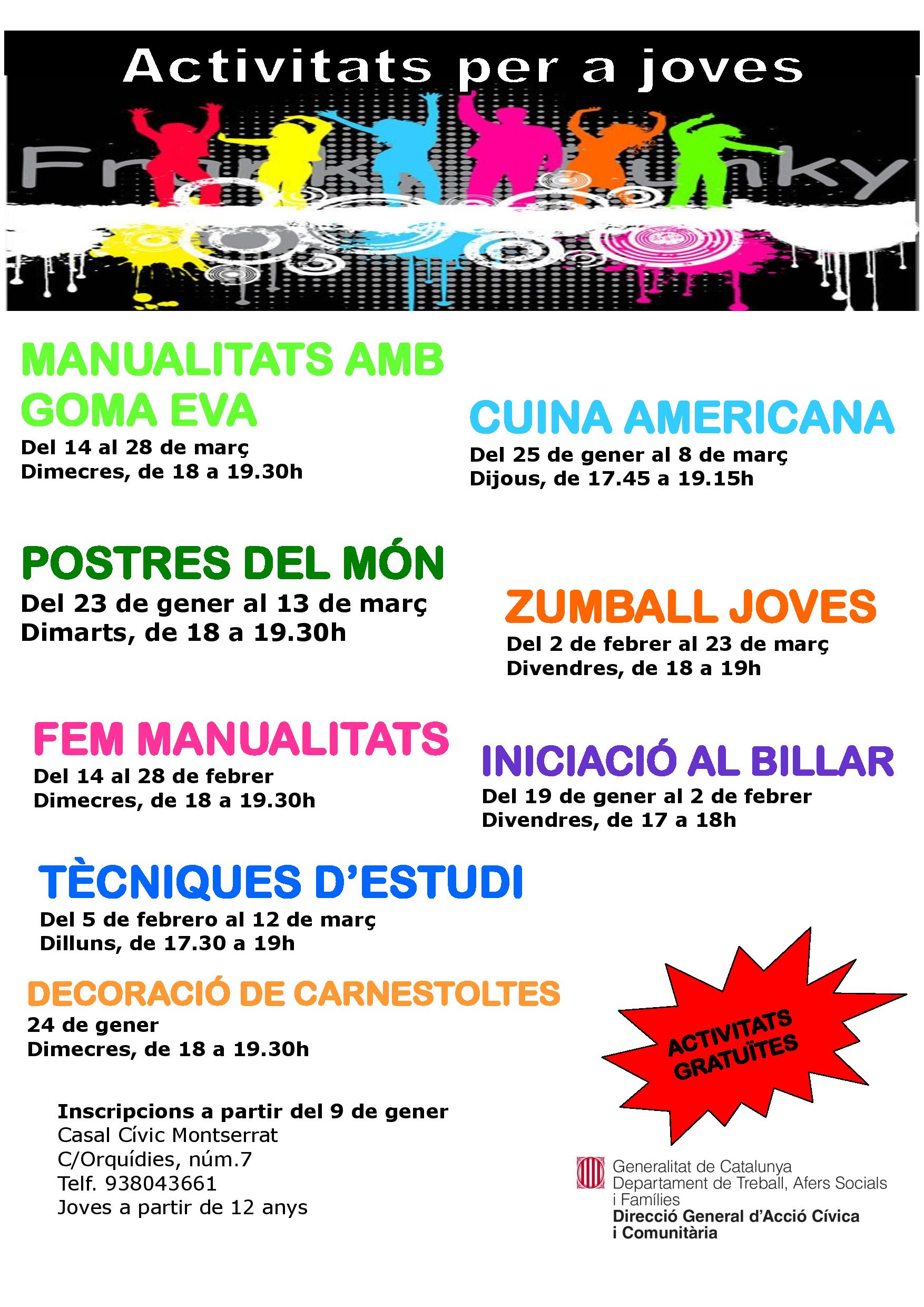 El Centre Cívic Montserrat d’Igualada ja té programades les activitats per a joves d’aquest hivern: