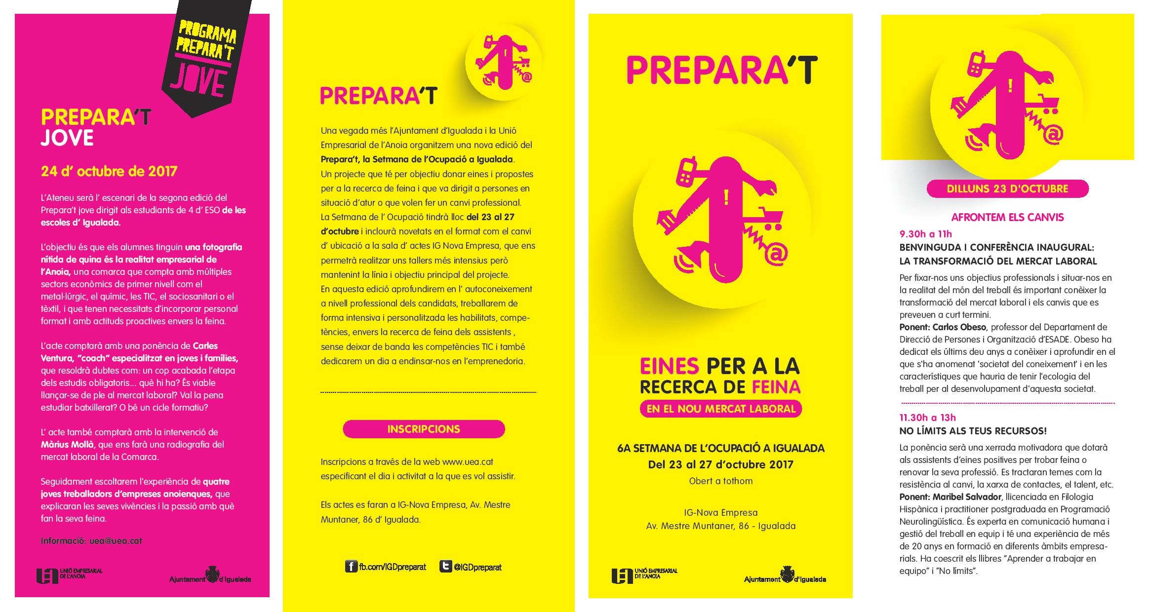 Enguany també s’ha creat un nou espai: Prepara’t JOVE. El 24 d’octubre a l’Ateneu Igualadí.