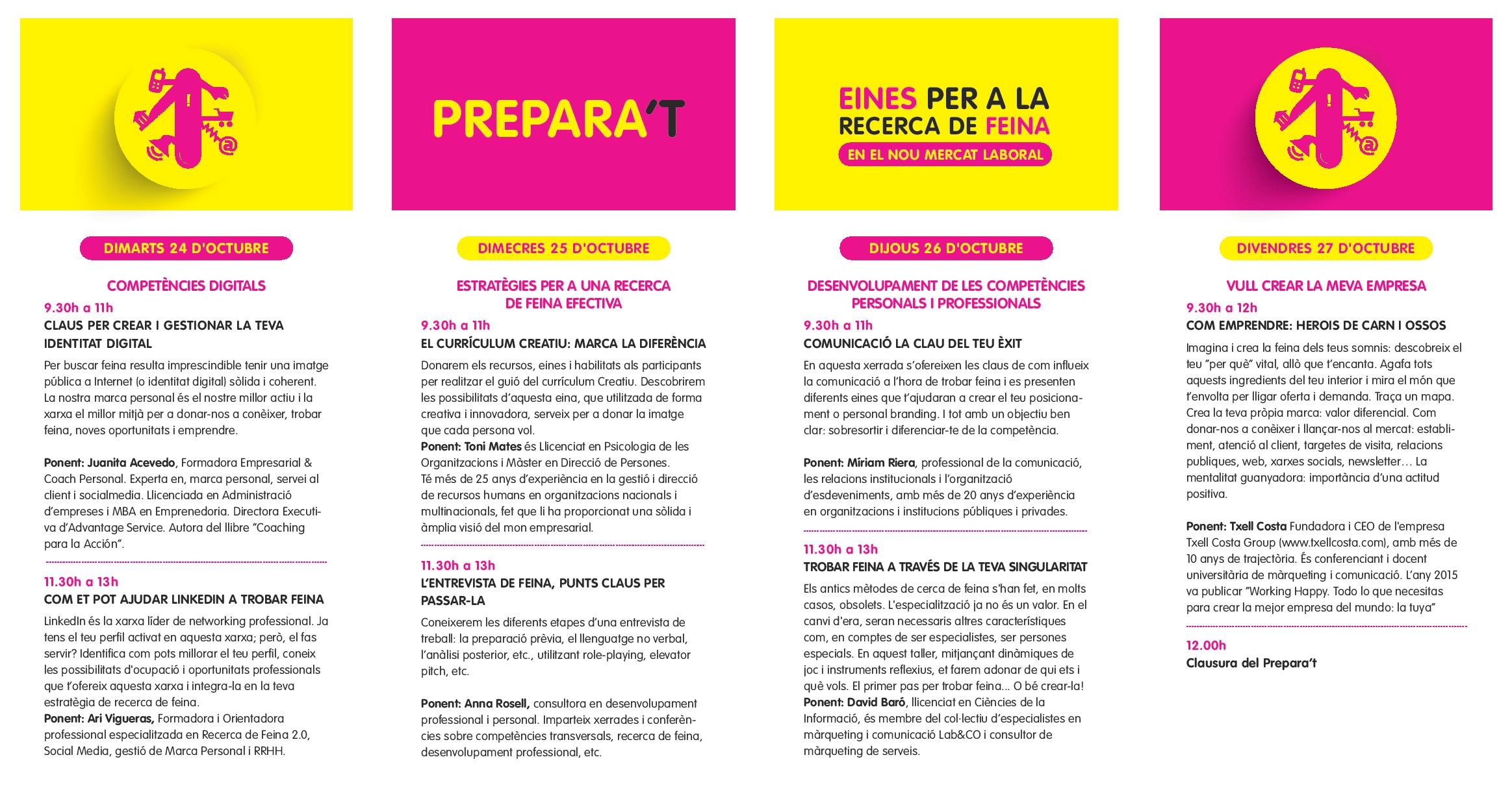 Us podeu inscriure GRATUÏTAMENT a les conferències i tallers del Prepara’t 2017 en el següent formulari