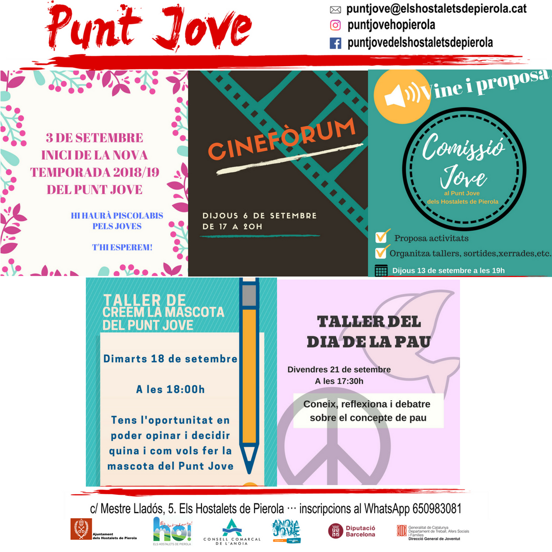 El Punt Jove d’Hostalets de Pierola ja té preparades les activitats pel mes de setembre.
