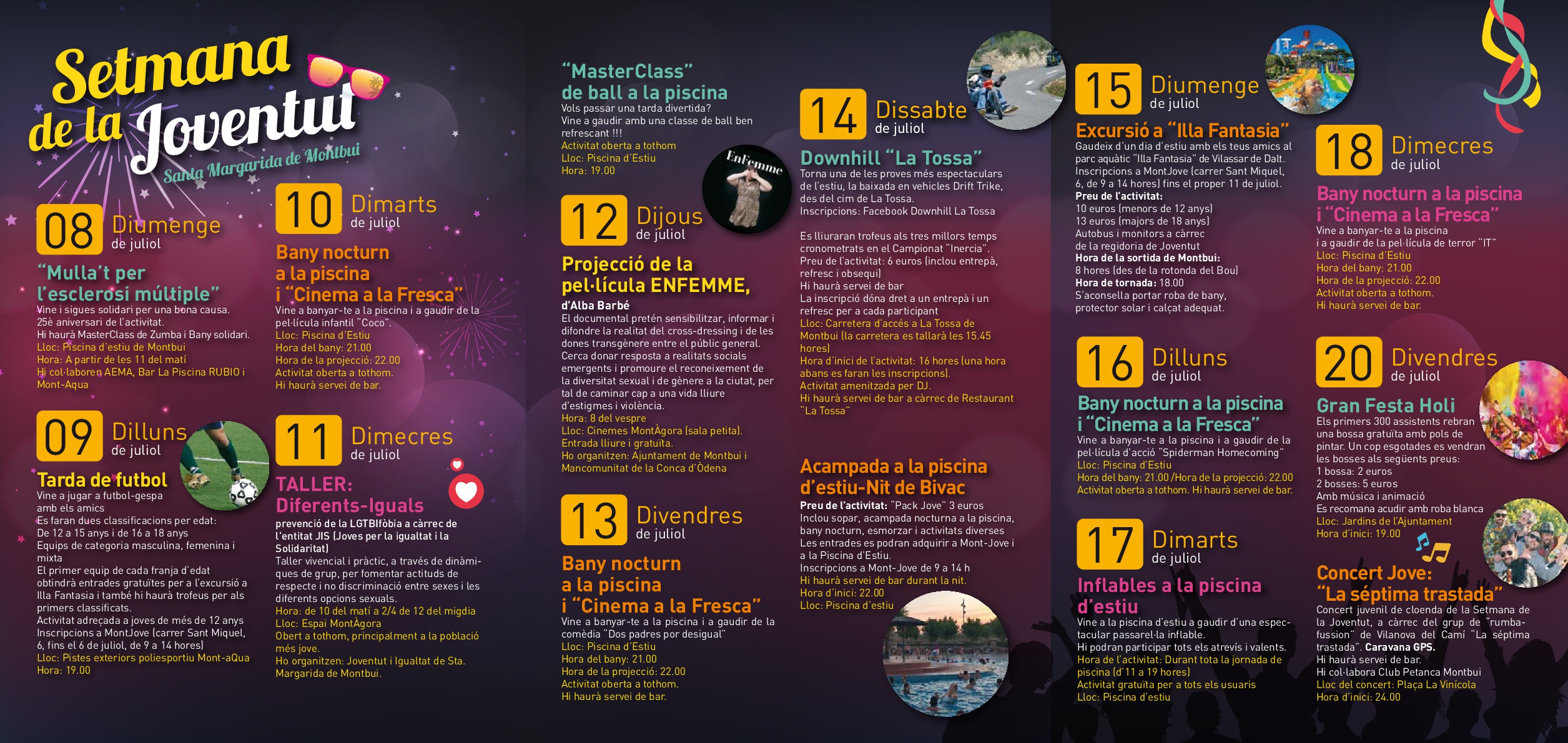 Arriba la Setmana de la Joventut a Santa Margarida de Montbui, des d’aquest diumenge dia 8 i fins el divendres 20 de juliol podreu gaudir d’activitats diverses. Algunes activitats requereixen inscripció prèvia!