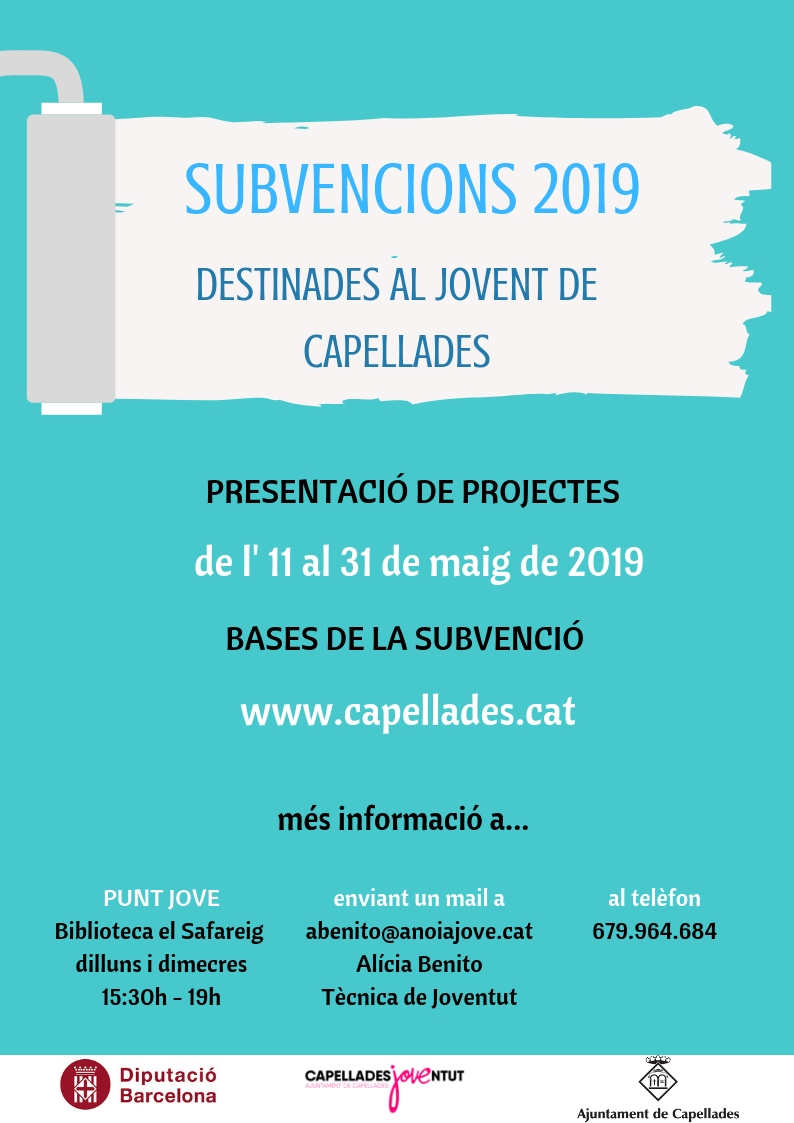En aquesta convocatòria s’ha destinat un pressupost de 2.500 euros. Podran acollir-se totes aquelles entitats, que durant el 2019, realitzen activitats destinades al jovent de Capellades. Les bases es poden consultar a la pàgina web de l’Ajuntament de Capellades.