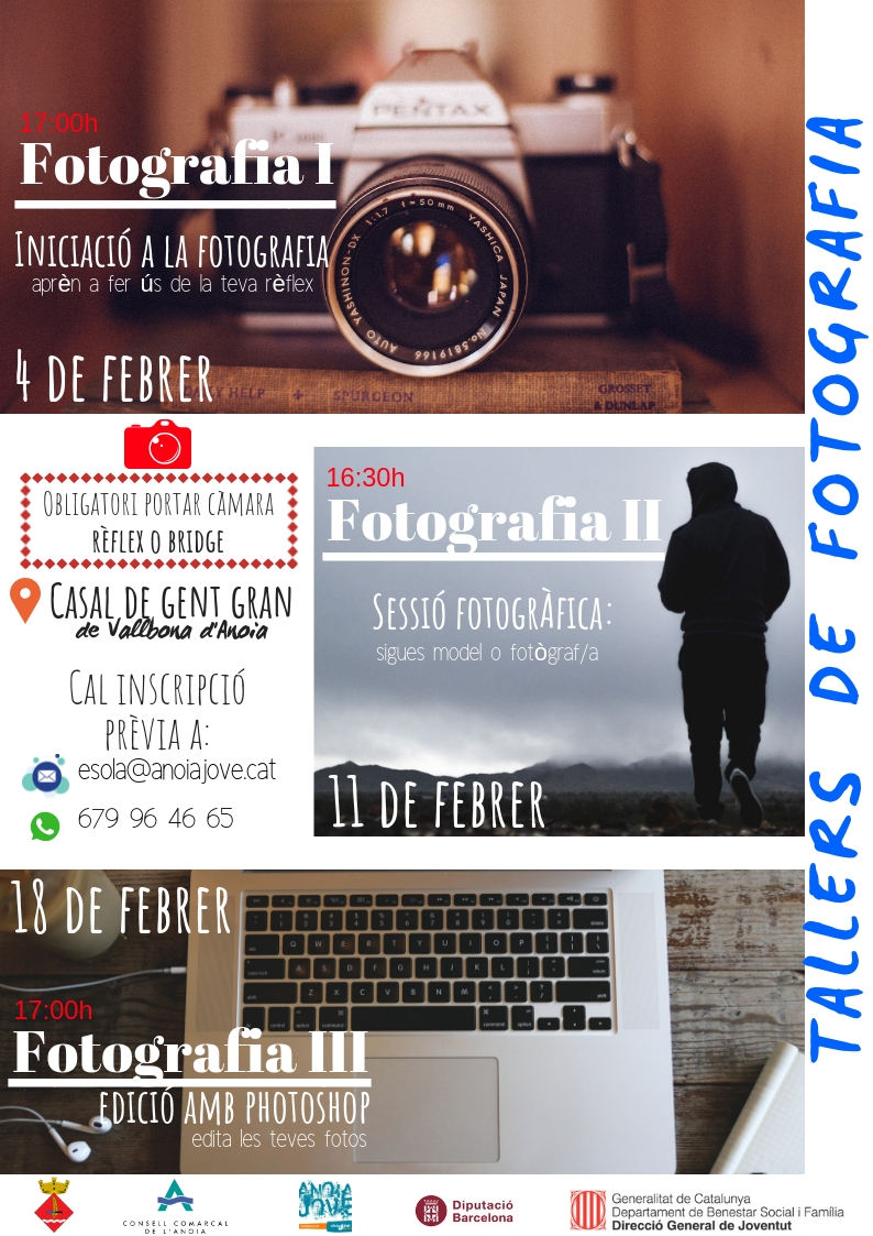 A l’Espai Jove de Vallbona d’Anoia s’inicia un cicle de cursos de fotografia per als i les joves que tinguin interès en la fotografia. Es realitzarà durant tres dilluns del mes de febrer a partir de les 17h.