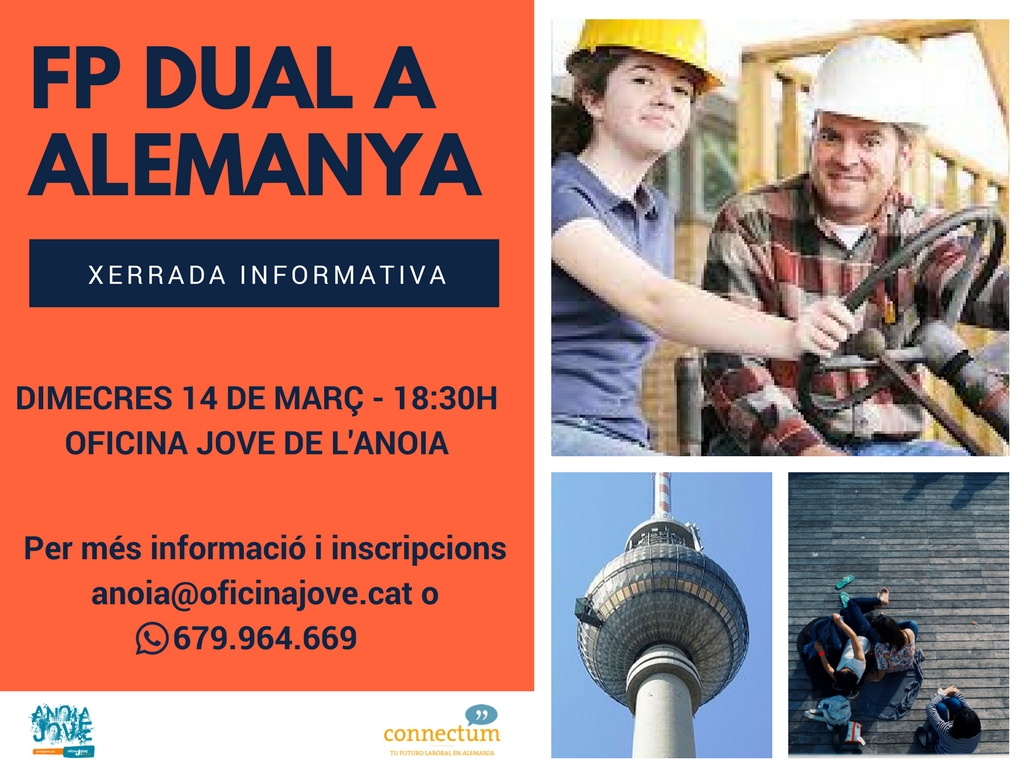 L’Oficina Jove de l’Anoia, juntament amb Connectum, organitza el proper dimecres 14 de març una sessió informativa sobre l’FP Dual a Alemanya.