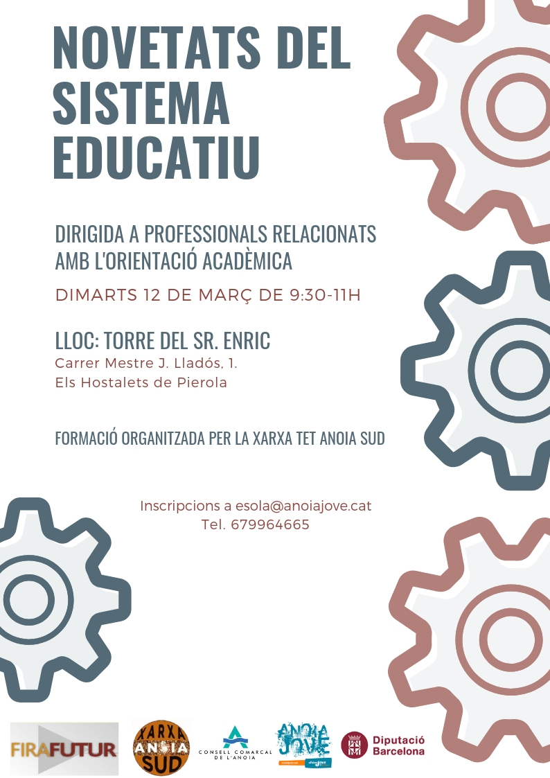Xarxa TET Anoia Sud, amb el suport de l’Oficina Jove de l’Anoia, organitza una xerrada adreçada a professors i professores de centres d’educació secundària obligatòria i d’estudis postobligatoris, així com també a altres professionals relacionats amb l’orientació acadèmica.